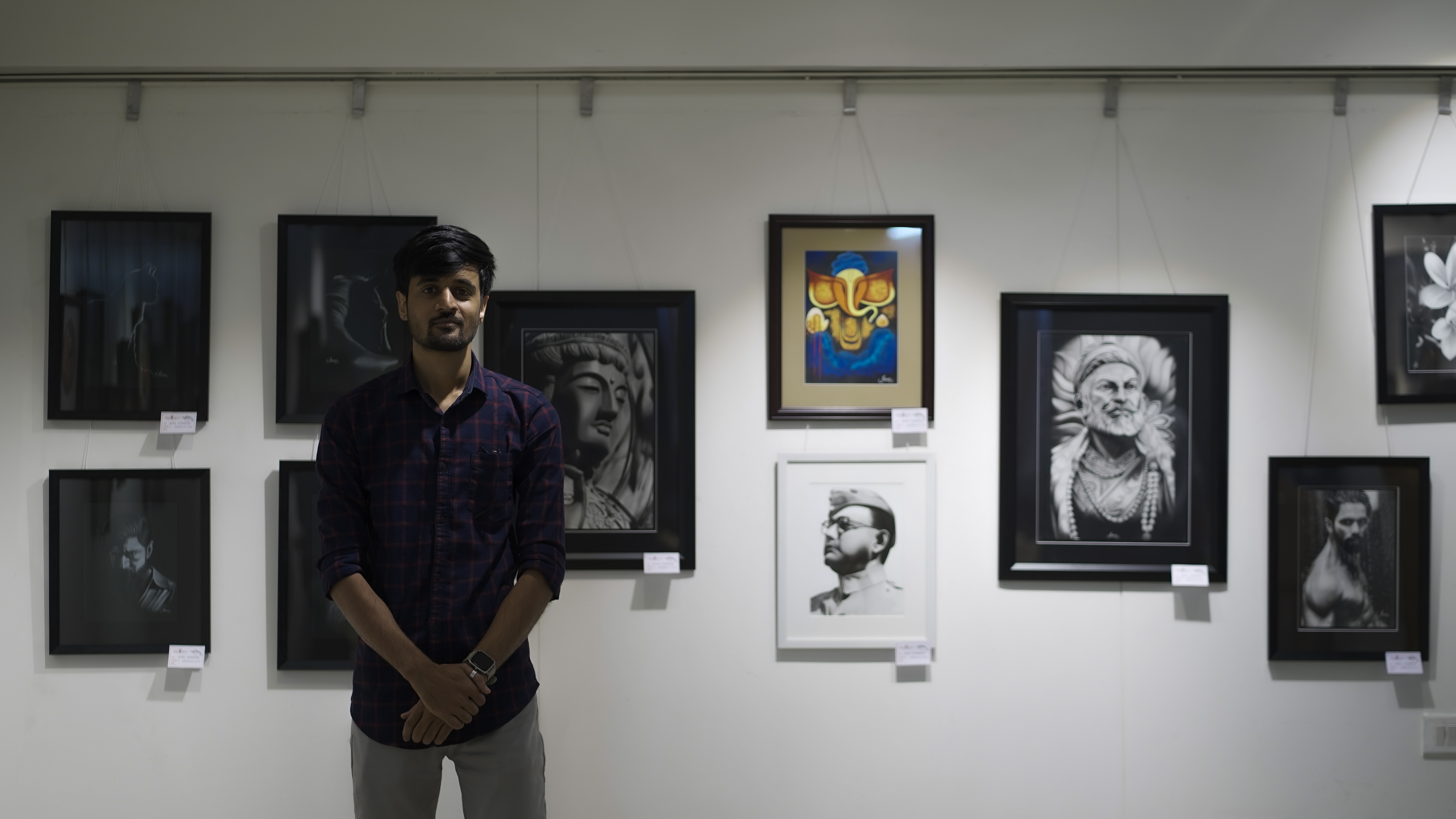 The exhibition was inaugurated by Shri Hanumant Todkar (Art professor) with chief guest Shri Raj Kumar (Sub zonal director, India council for cultural relations, New Delhi). Each artwork is created using charcoal’s natural contrasts, allowing light and shadow to shape mood and movement. The absence of colour draws the viewer closer to texture, detail, and feeling, making every piece intimate and immersive. The strokes are bold yet sensitive, capturing both intensity and vulnerability in a single frame.