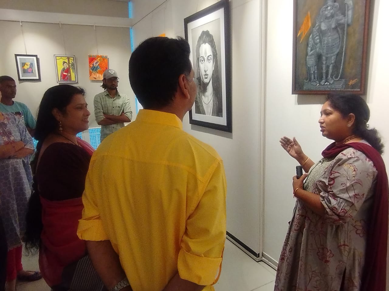 The exhibition was inaugurated by Shri Moraya Gosavi’s descendant, along with Shri Ram Temple Devasthan Trust (Chinchwad) Chief Trustee, Shrikant Shripad Dev. The exhibition features various themes such as nature, music, devotion, dance, and cultural expressions. Artists have presented paintings inspired by classical music, folk traditions, spiritual devotion to Lord Ram, contemporary thoughts, and emotions connected with the New Year.