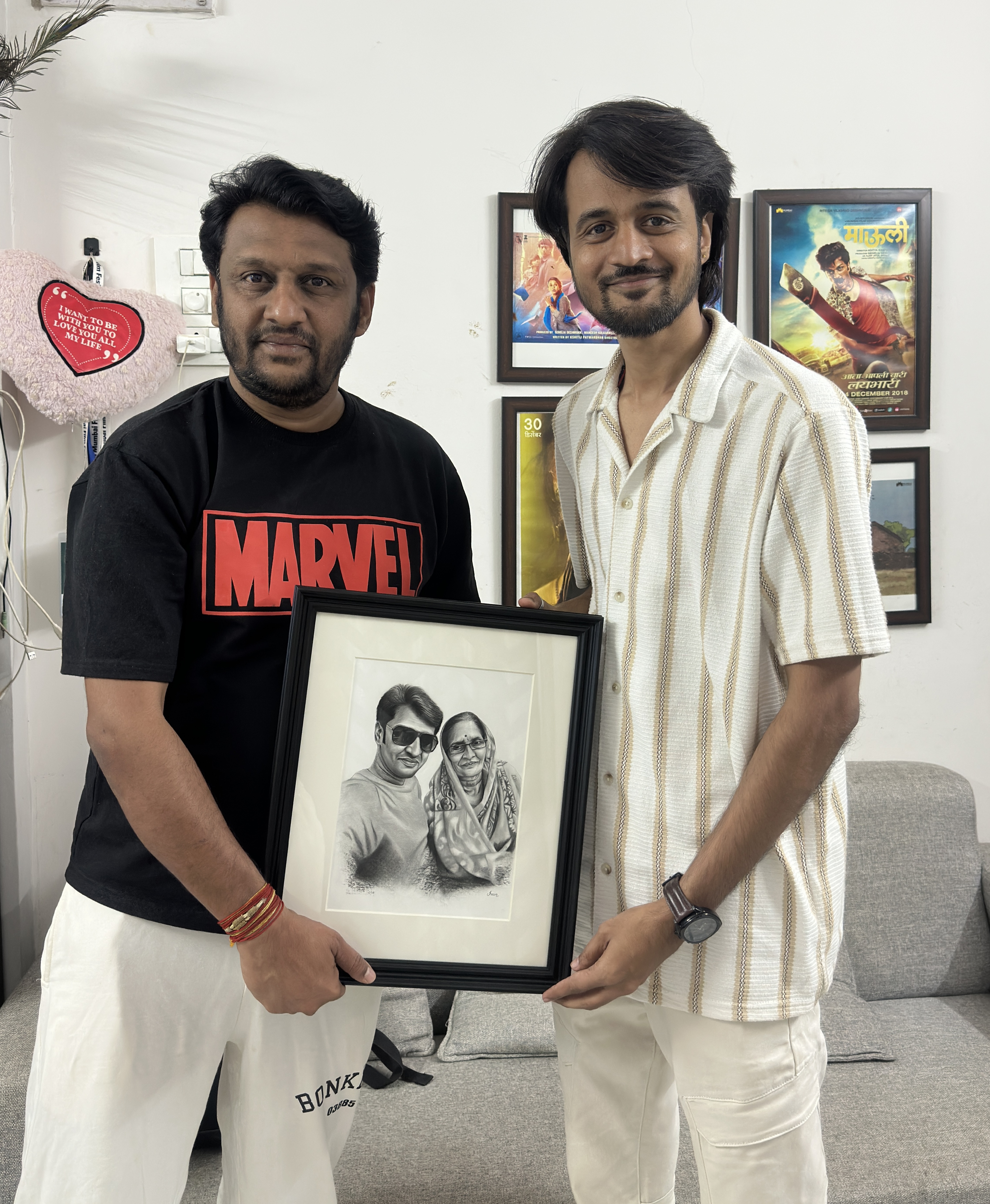 What made the meeting even more special was his humility and warmth. Despite being a well-known figure in the Marathi film industry, he received the artwork not as a formality, but as a deeply personal gesture. His appreciation was not only for the technical aspects of the portrait, but for the thought and emotion behind it.